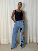 Jean bota recta Logo apliques letras casual - Azul Claro